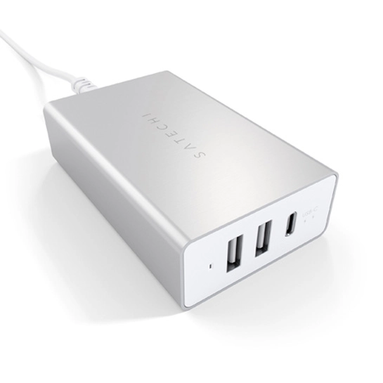 Зарядное устройство Satechi USB-C идеально подходит для тех, кто путешествует с несколькими электронными устройствами, позволяет заряжать два устройства USB-A и одно устройство USB-C одновременно! Просто подключите зарядное устройство к сетевой розетки, и Вы готовы зарядить все Ваши цифровые девайсы. Также отметим, что коннекторы и корпус устройства изготовлены из анодированого алюминия, что защищает его от электромагнитных помех и делает его легким, а также прочным.