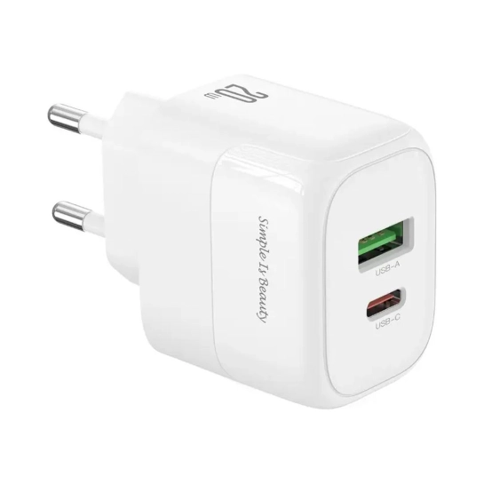Сетевое зарядное устройство XO L137 - 20W PD USB-C & 18W QC USB-A White
