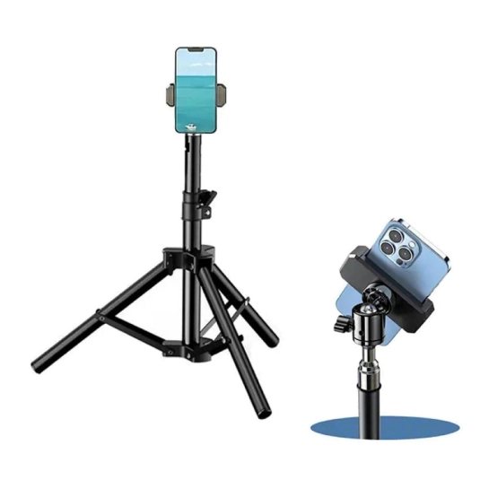Штатив позволяет регулировать высоту до 55 см, что делает его удобным для настольного использования или съемки на низком уровне. Трехсекционные ножки с системой быстрой блокировки обеспечивают стабильность и легкую настройку, а силиконовые накладки на основе предотвращают скольжение, обеспечивая безопасность устройства. Универсальная крепь подходит для смартфонов с диагональю от 4" до 7", а также для камер со стандартной винтовой крепью.
