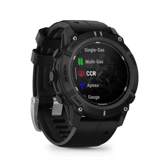 1,2-дюймовый AMOLED-экран обеспечивает отличную видимость на любой глубине, часы оснащены сапфировым стеклом и водонепроницаемыми кнопками, а их рейтинг погружения составляет 10 АТМ.