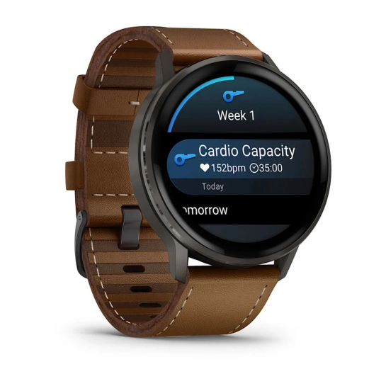 Описание Смарт-часы Garmin Venu 4 45 mm Slate with Brown Leather Band (010-03014-03)