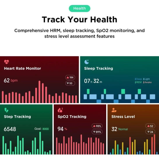 Отслеживайте свои жизненные показатели в одном месте с 24/7 отслеживанием. От количества шагов до частоты сердечных сокращений, включая расширенное отслеживание сна с ночным обновлением данных о быстрой, глубокой и медленной фазе сна.