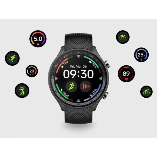 | Датчики: | Гироскоп, Акселерометр, Сердечного ритма, Определение уровня кислорода в крови, Барометр, Геомагнитный датчик, Пульсоксиметр, Шагомер, Датчик освещенности, Пульсометр |