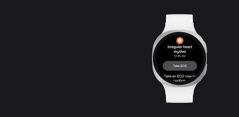 Чувствуйте себя уверенно, зная, что смарт-часы Galaxy Watch8 непрерывно следят за частотой вашего пульса. Функция оповещения о нарушениях сердечного ритма (IHRN) постоянно анализирует ритм сердца в фоновом режиме. В случае обнаружения аномальных отклонений - в частности признаков, которые могут свидетельствовать о фибрилляции предсердий - вы получите соответствующее оповещение. После этого вы можете сделать электрокардиограмму, чтобы получить более подробную информацию о состоянии сердца.
