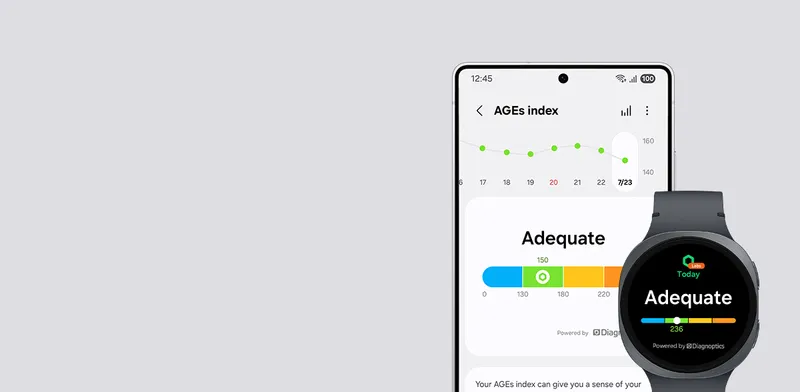 Смарт-часы Galaxy Watch8 помогают заботиться о метаболическом здоровье без лишних усилий. Просто надевайте их на ночь и получайте автоматические данные об индексе конечных продуктов гликации (КПГ). Показатели КПГ подаются по четырем шкалам, что позволяет оценить текущее состояние организма и скорректировать образ жизни в сторону более сбалансированного. Часы Galaxy Watch8 помогают лучше понимать потребности своего тела, и оставаться активными и здоровыми в любом возрасте.