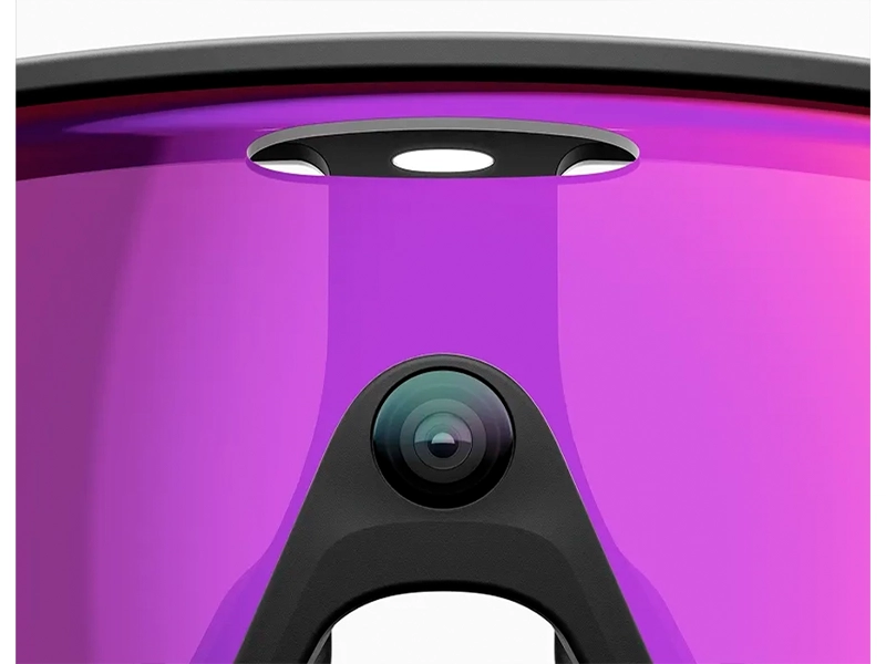 Светодиодный индикатор в центре очков Oakley Meta Vanguard сообщает окружающим, когда вы записываете видео, делаете фотографии или ведете прямую трансляцию. Если индикатор закрыт или перекрыт, очки предупредят вас о необходимости включить его перед началом съёмки.