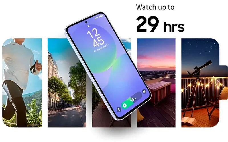 Оставайтесь на связи весь день с аккумулятором емкостью 5000 мАч, поддерживающим до 29 часов воспроизведения видео. А в случае разрядки воспользуйтесь сверхбыстрой зарядкой мощностью 45 Вт, чтобы быстро восстановить энергию.