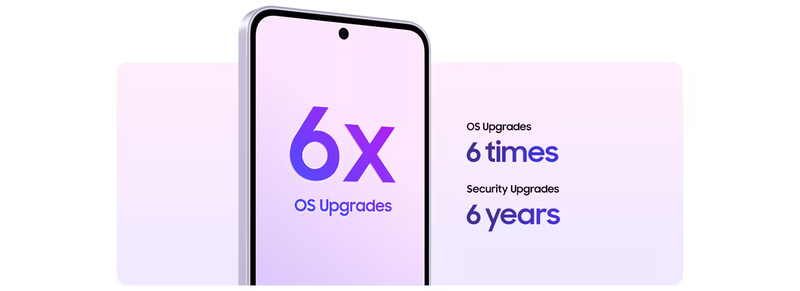 Обеспечьте обновление и безопасность вашего Galaxy A37 5G благодаря долгосрочной поддержке программного обеспечения, что позволит вам наслаждаться телефоном в течение многих лет. Galaxy A37 5G поддерживает до 6 обновлений ОС, поэтому вы можете открыть для себя новые и более простые способы создания, подключения и оставаться производительными благодаря слаженным действиям и функциям управления устройствами. Кроме того, вы получаете до 6 лет гарантии безопасности и технического обслуживания, что поможет предотвратить угрозы безопасности. Доступность и сроки обновлений Android и обновлений системы безопасности могут отличаться в зависимости от модели устройства и рынка.