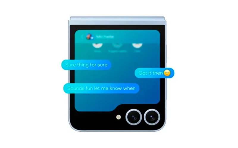 Разговор не прекращается даже тогда, когда смартфон Galaxy Flip6 закрыт. Вы можете отправлять сообщения непосредственно через FlexWindow с помощью функции Chat Assist. Просто выберите один из рекомендуемых ответов, предложенных искусственным интеллектом, и продолжайте общение без прерываний.