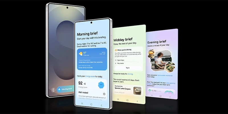 Новая версия One UI 7, оптимизированная для работы с искусственным интеллектом, предоставляет удобный доступ к уведомлениям Now Brief, музыке, таймеру и другим приложениям через обновленную панель Now Bar, не требующую разблокировки устройства. Главный экран можно легко настроить с помощью гибких макетов и обновленных виджетов. Реальные уведомления помогут отслеживать важные процессы, такие как таймеры и голосовые записи, прямо на панели Now Bar, в строке состояния или на стандартной панели уведомлений.