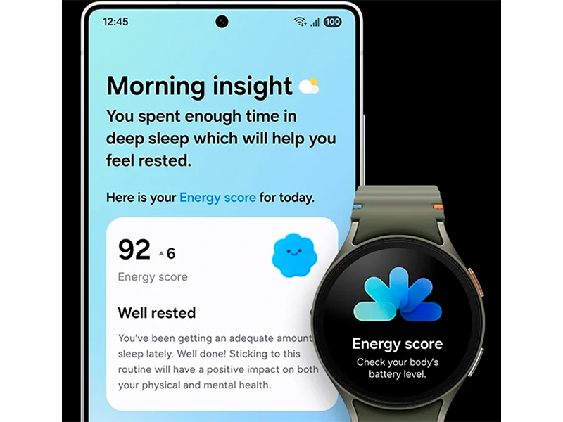 Достигайте спортивных целей и следите за своим Показателем жизненных сил. Подключите Galaxy Watch, чтобы получать персонализированные рекомендации и советы, включая анализ сна, активности и частоты сердечных сокращений.