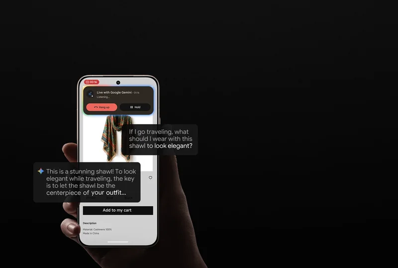 Спрашивайте Gemini обо всем, что видите. Предоставьте доступ к своей камере или экрану во время общения с Gemini Live.