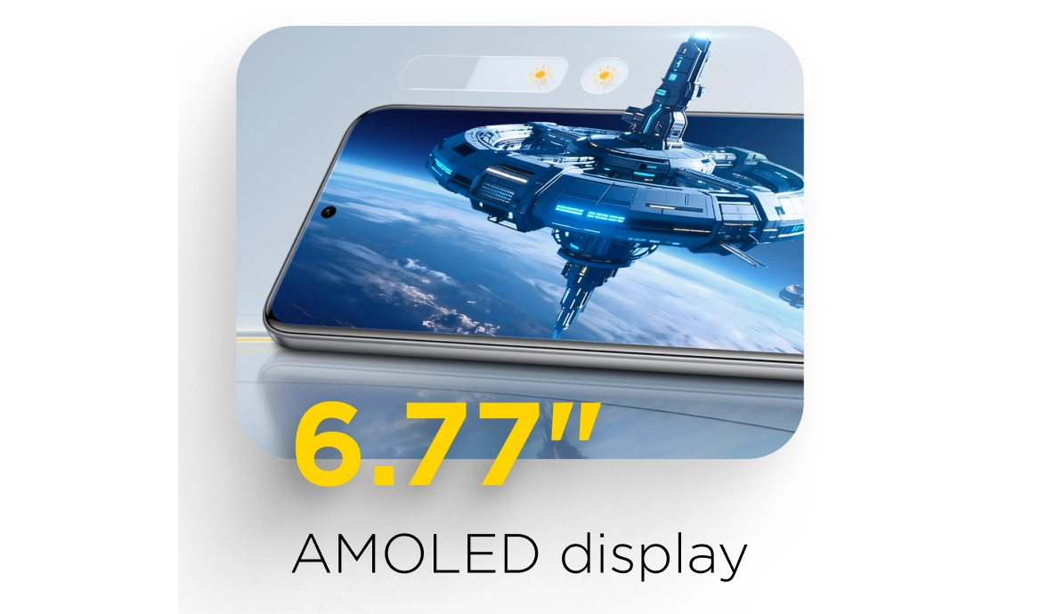 6.77-дюймовый Flow AMOLED-дисплей обеспечивает визуальную чёткость нового уровня. Частота обновления 120 Гц делает анимацию плавной, а пиковая яркость 3200 нит позволяет комфортно пользоваться устройством даже под ярким солнцем. Цветовой охват стандарта DCI-P3 и 12-битная глубина цвета обеспечивают точную передачу оттенков — насыщенную, реалистичную, без искажений, раскрывая детали, делая контент живым и выразительным.