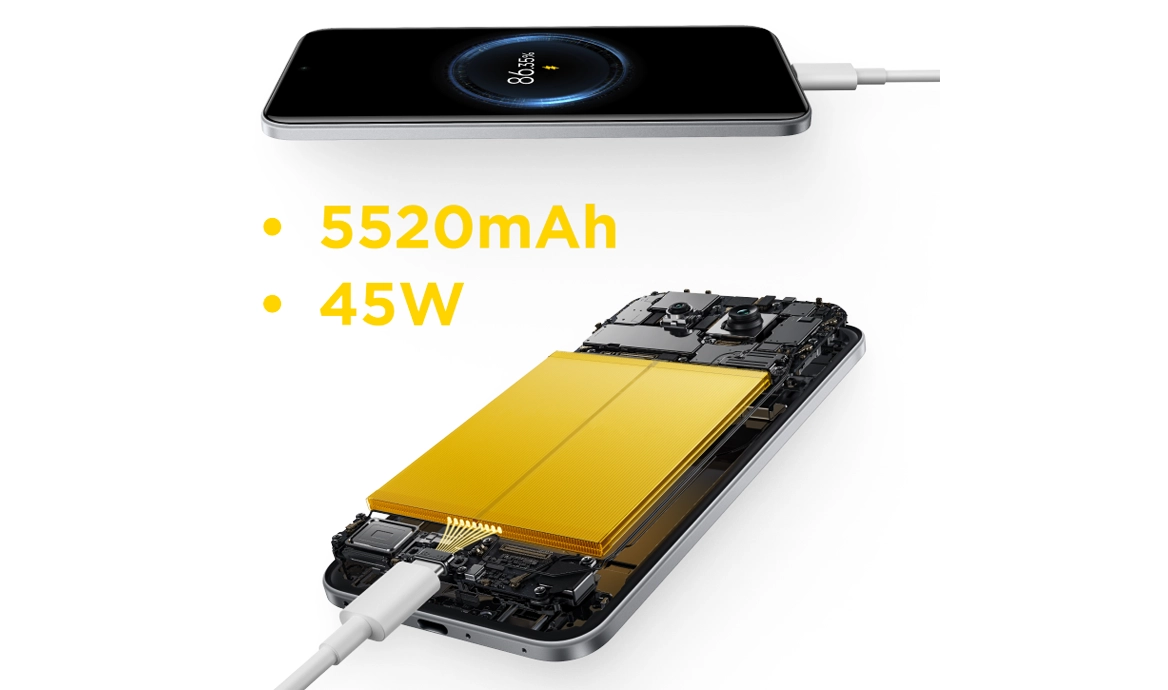 Аккумулятор ёмкостью 5520 мА·ч позволяет уверенно использовать смартфон на протяжении всего дня без дефицита заряда. Ты можешь смотреть видео, играть или работать — запас энергии рассчитан на любые интенсивные сценарии. Поддержка быстрой зарядки мощностью 45 Вт обеспечивает оперативное восстановление заряда: всего несколько минут на подзарядке дают часы активной работы. Интеллектуальная система управления питанием оптимизирует процесс зарядки, снижает тепловую нагрузку и продлевает срок службы батареи, сохраняя её эффективность даже при длительном использовании. В любых условиях ты получаешь стабильное и безопасное питание, которое делает устройство надёжным партнёром в динамичном ритме жизни.