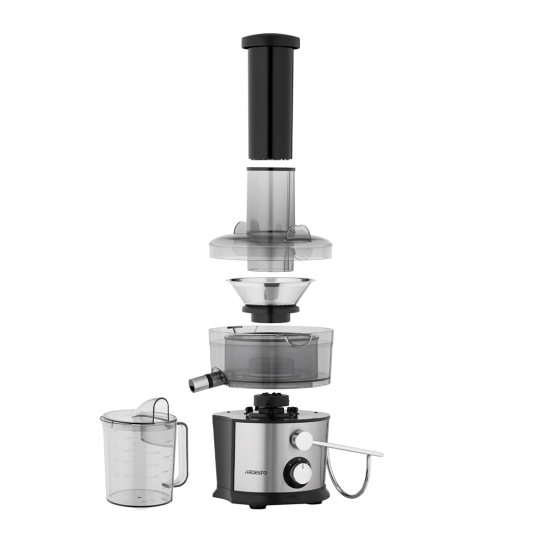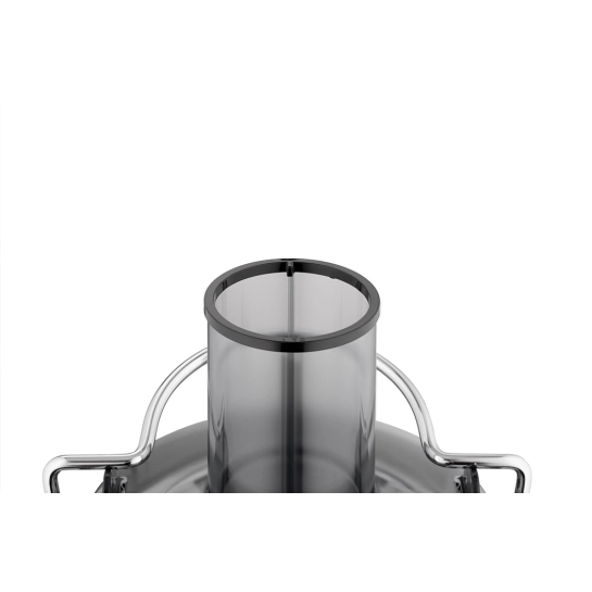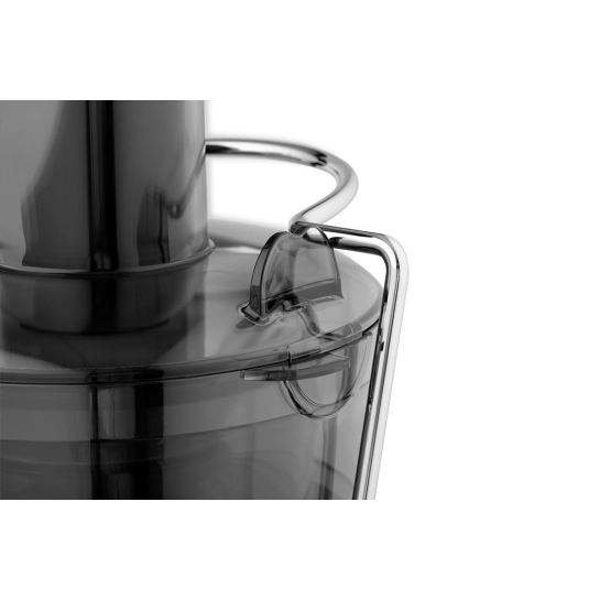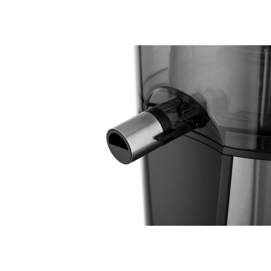 Корпус из нержавеющей стали с черными пластиковыми элементами скрывает малошумный двигатель мощностью 1100 Вт. Для удобства закладки плодов предусмотрено загрузочное отверстие диаметром 75 мм. Также доступна регулировка скорости – два режима, поэтому подобрать оптимальный для разных видов плодов очень просто. Получение натурального сока, не окисляющегося при выжимании, обеспечивают высокоэффективная терка и фильтр из нержавеющей стали.