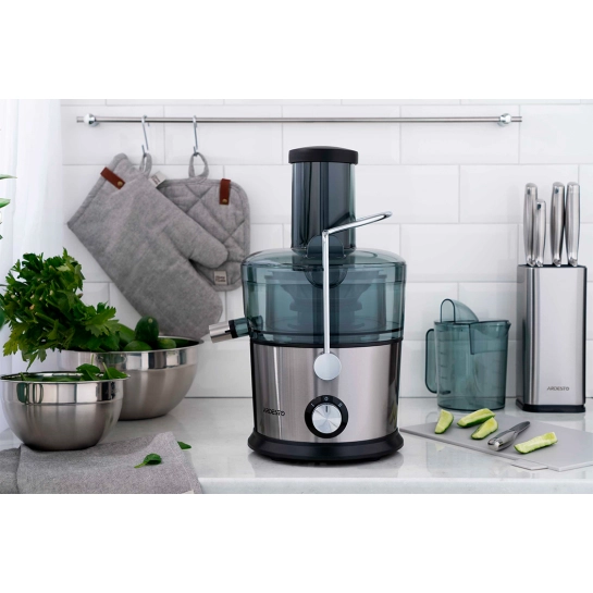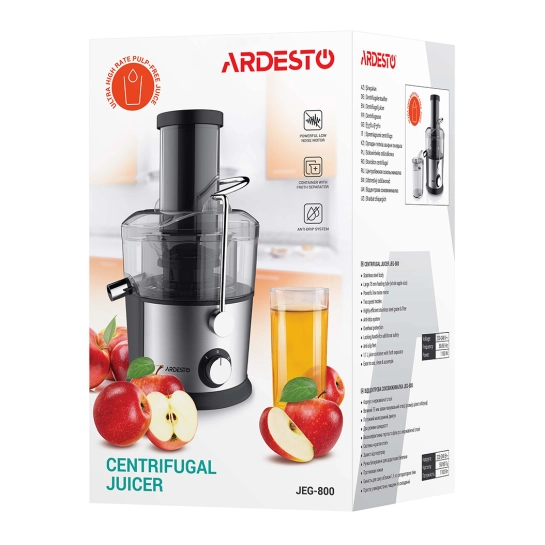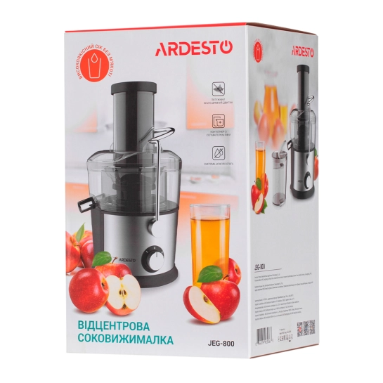 Удобство использования соковыжималки ARDESTO JEG-800 обусловлено несколькими особенностями конструкции. В частности, чтобы устройство непоколебимо стояло на поверхности, предусмотрены противоскользящие резиновые ножки. Для безопасности модель оснащена дополнительной предохранительной рукояткой и защитой от перегрева двигателя.