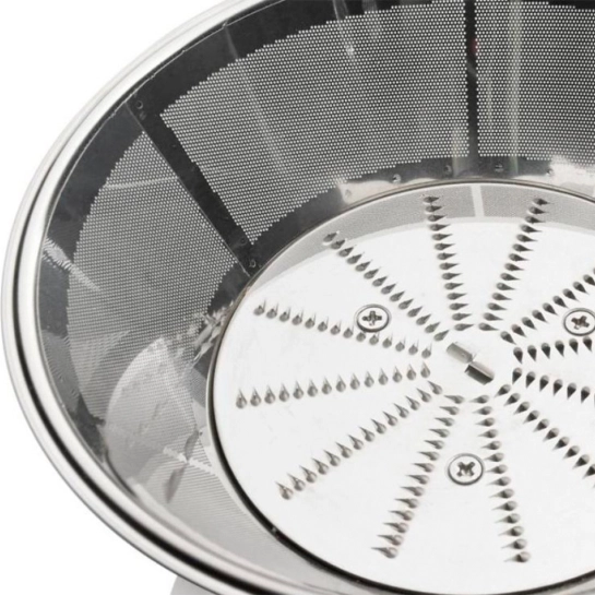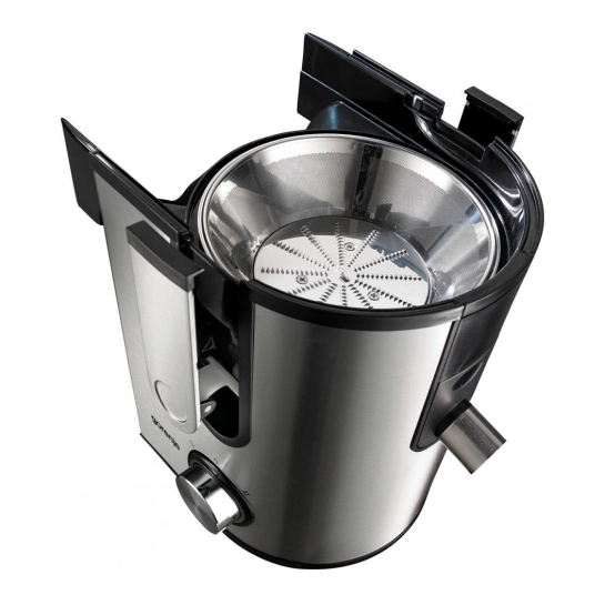 Центробежная соковыжималка Gorenje JC 900 E с коническим механизмом относительно компактна и удачно дополнит парк кухонной техники в каждом доме. С широким загрузочным отверстием вы можете просто вымыть фрукты и загружать их целиком, а крышка над желобом защищает от разбрызгивания или случайного попадания посторонних предметов в сок. Соковыжималка легко разбирается для очистки, специальная щеточка позволяет качественно очистить ситечко, а на корпусе из стали не остаются пятна даже от ярких овощей.