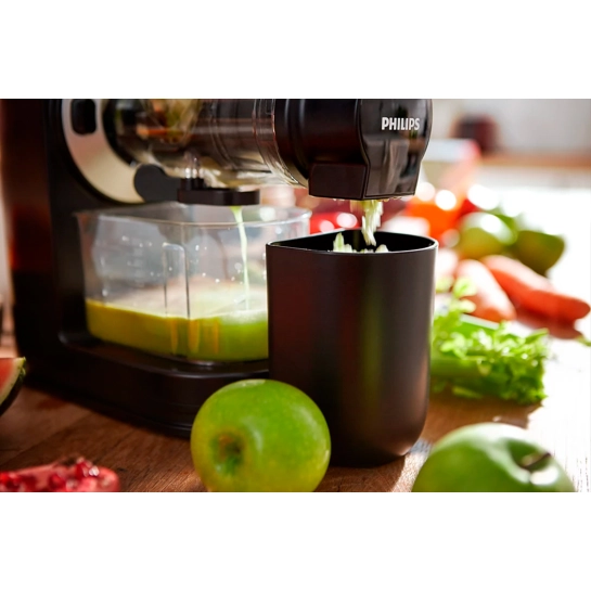Откройте для себя полезные свойства любых фруктов и овощей, получая до 80 % сока. Соковыжималка медленной экстракции позволит готовить сок и из зелени.