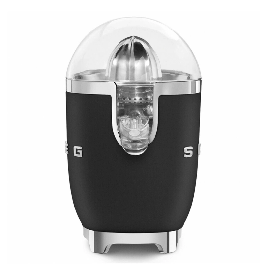 В момент использования бытовой аппарат автоматически включается и отключается, удобство розлива обеспечивает дозатор с защитой от капель. Для любителей натуральных соков соковыжималка SMEG CJF01 станет максимально задействованным бытовым прибором. Эта простая конструкция с полноценными рабочими функциями, обеспечивающими гарантированное качество процесса.