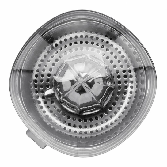 Внутри изделия расположены из нержавеющей стали конусная насадка и сетчатый фильтр, позволяющие максимально выжимать и фильтровать сок цитрусовых фруктов, который стекается в хромированную чашу.