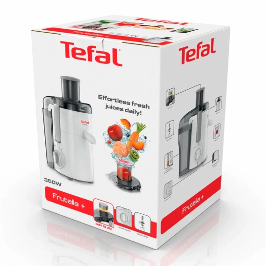 Соковыжималка Tefal Frutelia+ обеспечивает отличные результаты приготовления ваших любимых соков, самый простой способ наслаждаться здоровыми, вкусными свежевыжатыми соками каждый день. Широкая камера подачи позволяет легко вставлять большие или целые кусочки фруктов, мощность 350 Вт вместе с 2-ступенчатой регулировкой и функцией импульса для безупречной резки, дробления и смешивания.