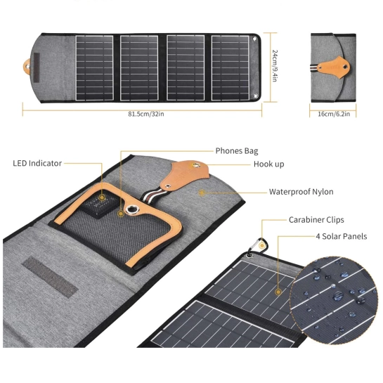 Портативное солнечное зарядное устройство содержит 4 солнечные панели SUN-Power с полимерным покрытием из ПЭТ, обеспечивающие высокий коэффициент конверсии 21%-25%. Он обеспечивает достаточную мощность для зарядки вашего USB-устройства по сравнению с другими 3-панельными солнечными зарядными устройствами.