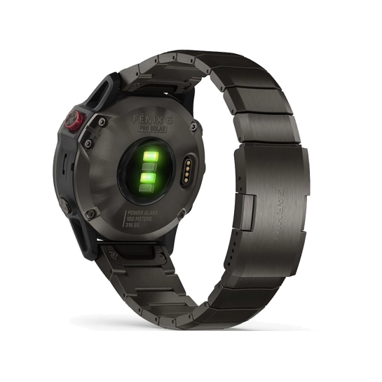 - Благодаря Power Glass с функцией подзарядки от солнечной энергии и режимами питания, которые можно настраивать, продолжительность работы умных часов fenix 6 Pro Solar составляет несколько недель.