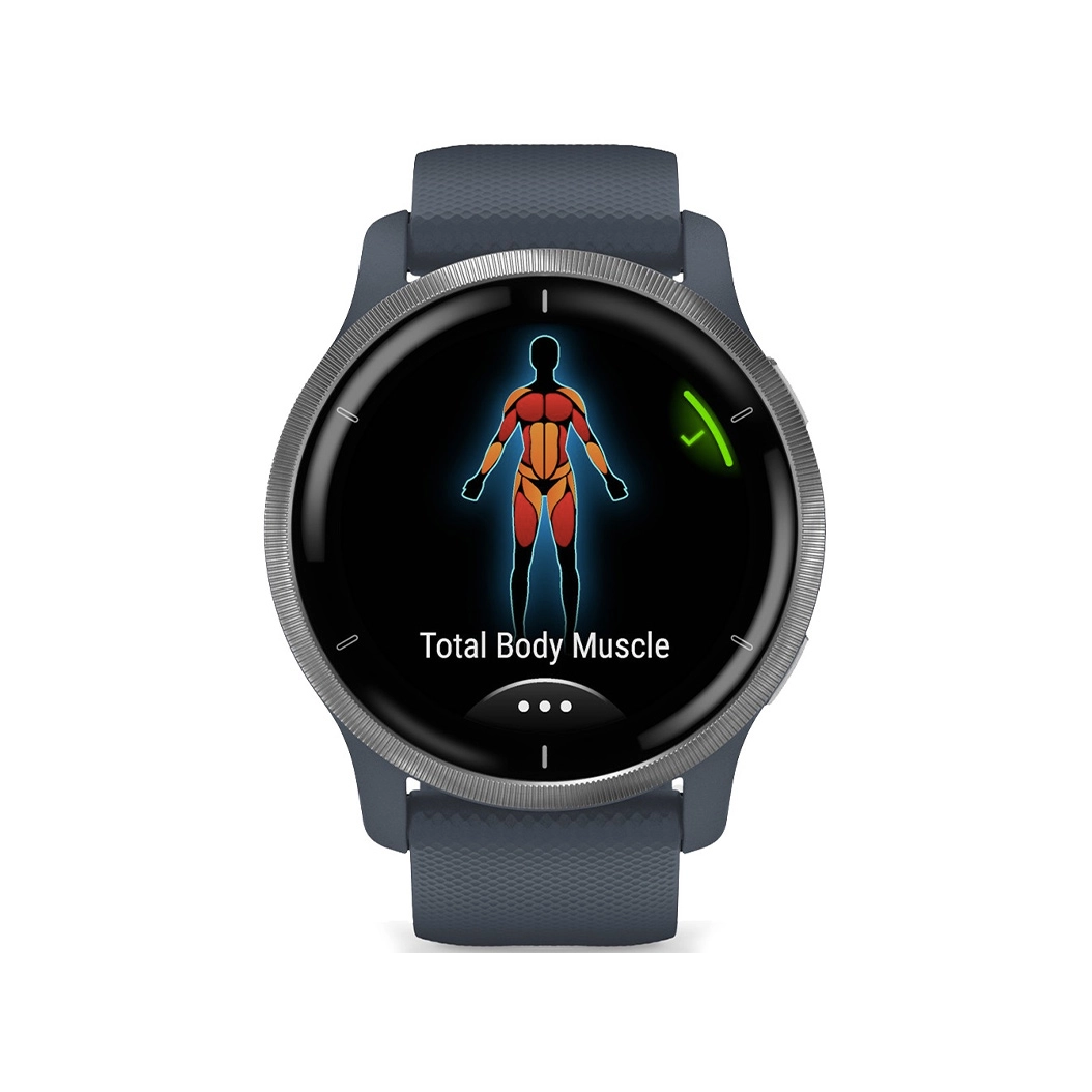 Смарт-часы Garmin Venu 2 синий гранит с серебристым безелем 010-02430-10 и с GPS-приемником включают улучшенные функции наблюдения за здоровьем. Находите новые занятия с помощью более 25 предзагруженных спортивных приложений. Используйте для занятий анимированные тренировки, показанные прямо на экране часов. Красивый дисплей AMOLED обеспечивает отличное изображение даже при ярком солнечном свете.