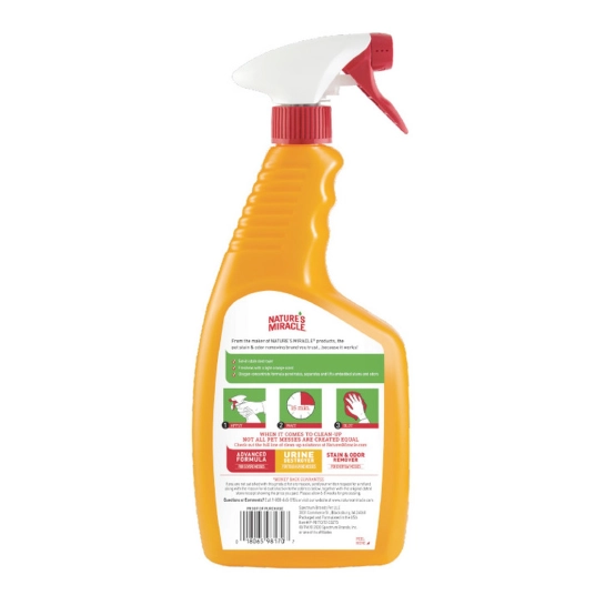 Уничтожитель пятен и запахов Окси-формула для кошек от Nature's Miracle — идеальный выбор для владельцев животных, желающих быстро избавиться от пятен и запахов. Формула, насыщенная активным кислородом, разрывает связь между загрязнением и поверхностью и способствует его распаду. Окси-формула освежает цвет ковров и мягкой мебели, позволяя им выглядеть как новые. Средство прекрасно справляется с пятнами и запахами, оставленными кошками и другими животными, на коврах, мебели, твердых поверхностях, тканях, переносках, спальных местах животных.