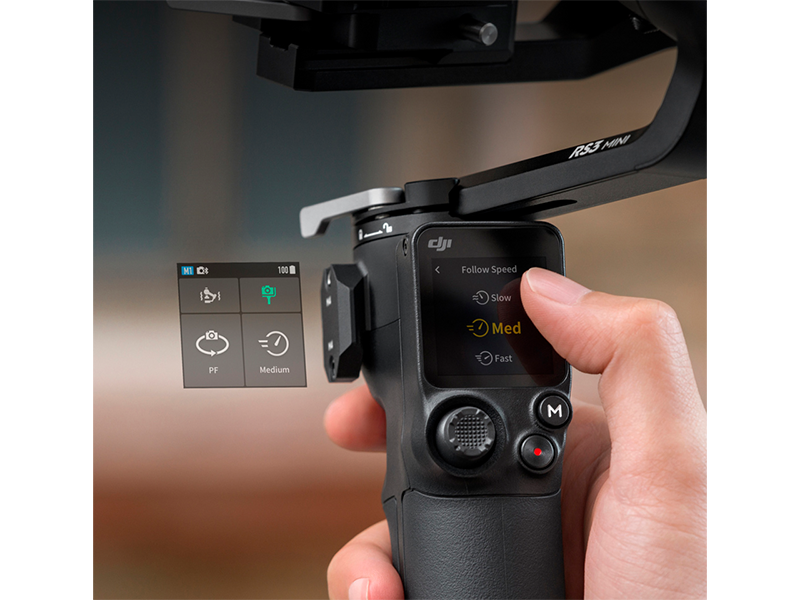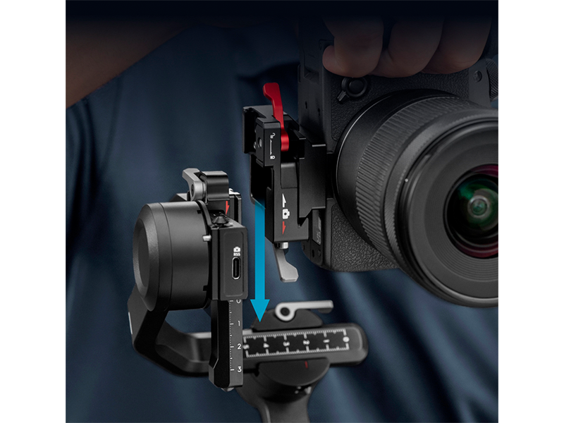 Благодаря мощным двигателям с высоким крутящим моментом RS 3 Mini выдерживает нагрузку до 2 кг (4,4 фунта), что позволяет использовать широкий спектр комбинаций камер и объективов.