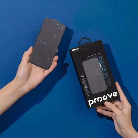 Главная особенность стекол Proove Privacy — встроенный антишпионский фильтр, который делает экран невидимым для людей сбоку. Чёткое изображение остаётся доступным только пользователю, который смотрит прямо на дисплей. Это удобное и надёжное решение для защиты личной информации, переписок, рабочих данных и любых действий на смартфоне.