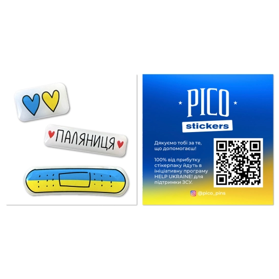 Бренд PICO Pins & Stickers (insta: @pico_pins) совместно с инициативной программой Help Ukraine выпустили серию супер-качественных 3D-стикеров, посвященных нашей борьбе против российской агрессии. 100% от прибыли, полученной от продажи стикерпаков, будет перечислено в Help Ukraine! – инициативной программе компании Техно Ёж, которая с первых дней войны занимается помощью ВСУ и теробороны.