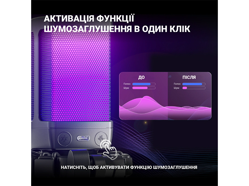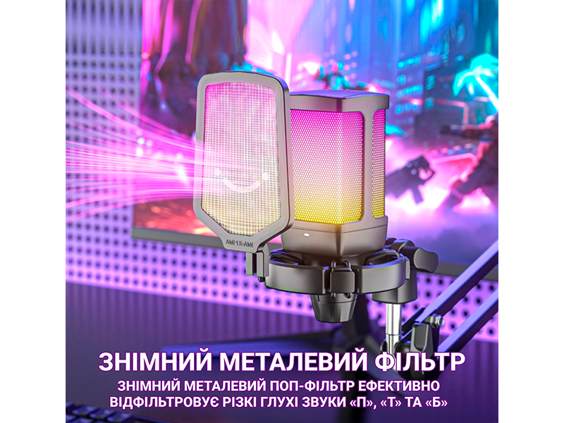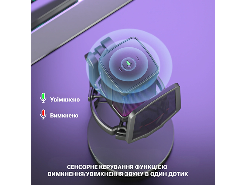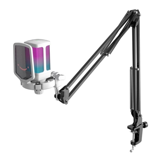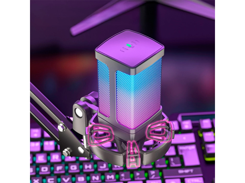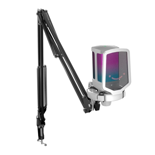 Прочный пантограф в комплекте позволяет регулировать горизонтальное и вертикальное положение микрофона, что обеспечивает идеальное расположение и эффективную организацию рабочего пространства. Регулируемая RGB-подсветка с разными режимами придает стилю и позволяет создать уникальную атмосферу, подчеркивая ваш профессионализм в любом творческом процессе. Микрофон совместим с Windows, Mac и PlayStation, а порт USB, расположенный за микрофоном, делает подключение простым и удобным.