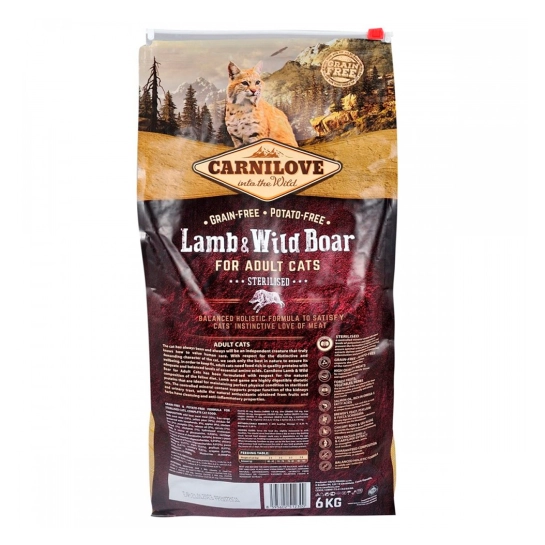 Описание Сухой корм Carnilove Cat Sterilised для стерилизованных кошек, ягненок и кабан, 6 кг (170205/2300)