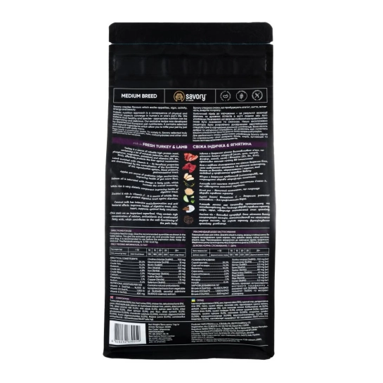Характеристики для Сухой корм Savory Medium для собак средних пород, со свежим ягненком и индейкой, 1 кг