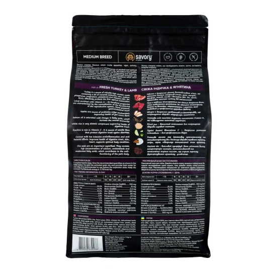 Характеристики для Сухой корм Savory Medium для собак средних пород, со свежим ягненком и индейкой, 3 кг