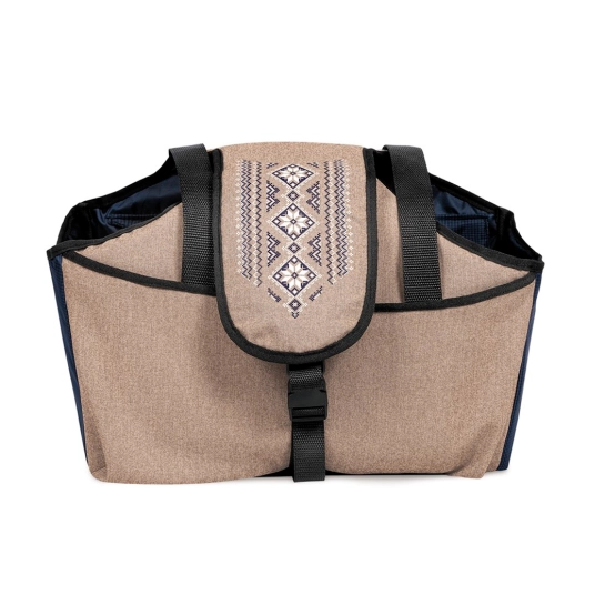 Украинский орнамент украшает верхний клапан модели и делает ее стильной и яркой. Но оригинальное украшение – это далеко не все преимущества сумки. Переноска изготовлена из прочной сумочной ткани, которая прекрасно выглядит, проста в уходе и прочна. Изолон придает модели форму и отлично защищает хвостика от холодного ветра и сырости. Окошечко позволяет любимцу разглядывать все вокруг, но не дает возможности выпрыгнуть. Сумка имеет надежную застежку, удобные ручки из широкой тесьмы и карманчик для полезных мелочей.