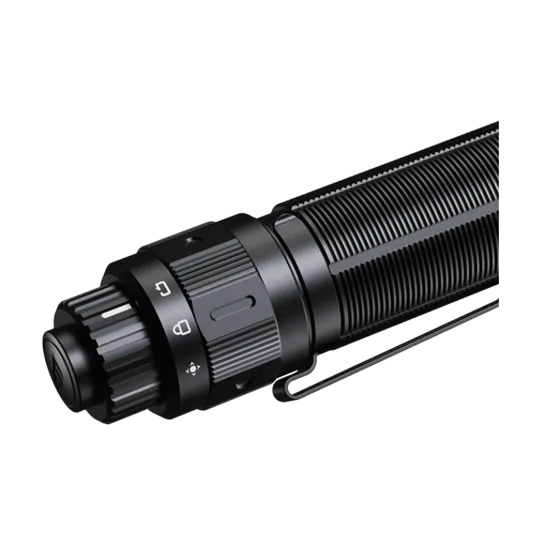 Fenix TK22TAC включается мягким нажатием (без щелчка) тактической кнопки в разблокированном и выключенном состоянии. Это позволяет мгновенно активировать модель. Если отпустить переключатель – произойдёт выключение. Чтобы зафиксировать включение фонаря, следует с усилием нажать на тактическую кнопку и снова нажать на неё, если требуется выключить фонарь.