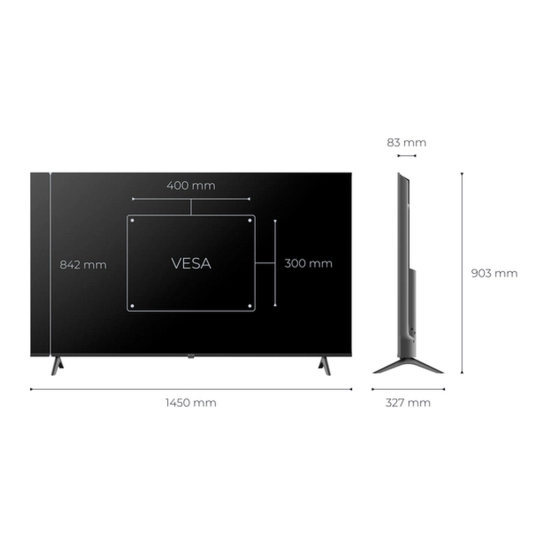 Телевизор **Kivi 65U770QB** готов стать центральным элементом вашего домашнего развлекательного комплекса, объединяя передовые технологии с современным дизайном для максимального удобства и удовольствия от просмотра. С поддержкой **VESA (400x300 мм)** вы легко можете установить телевизор на стену для получения еще большего пространственного эффекта.