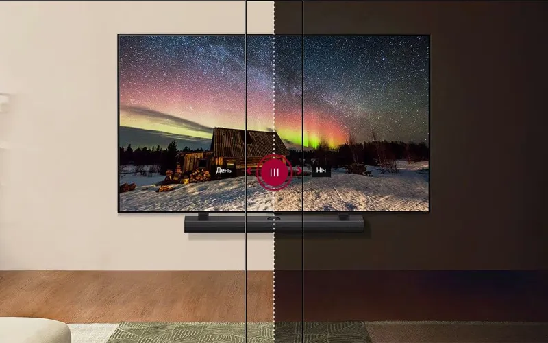 Функция управления яркостью автоматически определяет уровень освещённости в вашем помещении днём и ночью, обеспечивая балансировку изображения для чёткого и чистого восприятия.