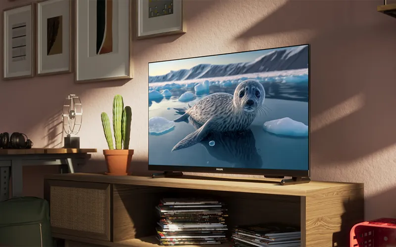 Телевизор Philips PFS6808/12 заключен в тонкую, почти незаметную рамку, подчеркивающую его элегантный стиль и не отвлекающую от реалистичной картинки на экране. Установленный на изящной подставке, он выглядит невесомым, создавая впечатление, будто парит над поверхностью.