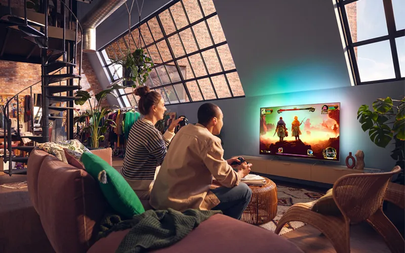 Этот телевизор обладает специальным режимом игр Ambilight, который совместим с HDMI 2.1, позволяя полностью раскрыть потенциал ваших игровых консолей и ПК, обеспечивая яркий игровой процесс с плавной графикой. Также поддерживается технология VRR.