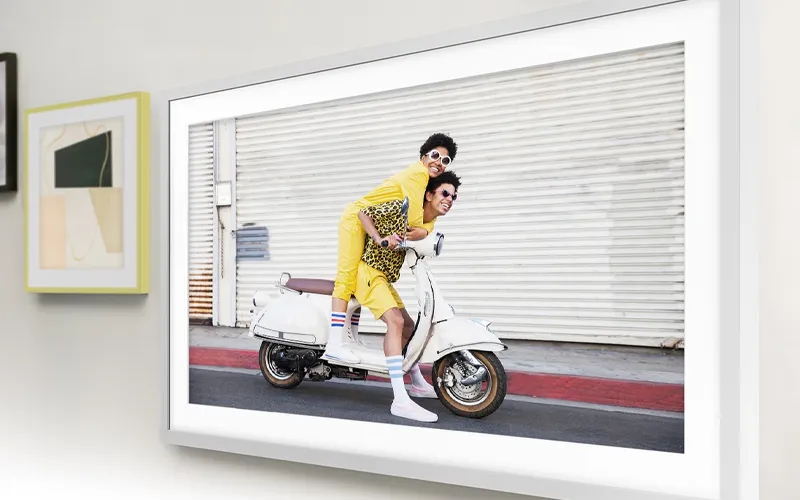 The Frame предлагает множество цветов рамок. Простые в использовании магнитные фиксаторы позволяют легко изменить цвет и стиль. Выберите тот, который лучше всего соответствует вашему настроению.