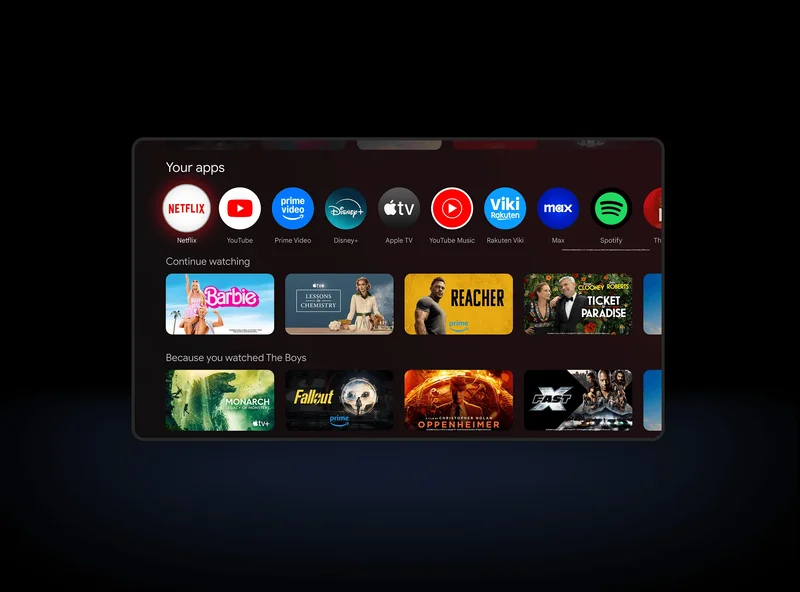 Выбирайте любимые фильмы и сериалы из более чем 400 000 или загружайте более 7000 приложений и игр, доступных в магазине Google Play. Телевизор также может воспроизводить онлайн-видео с различных потоковых медиаплатформ, таких как Netflix, Prime Video и YouTube.