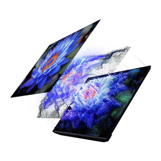 Провідна технологія Mini-LED-дисплея ділить екран на 308 незалежних зон затемнення, забезпечуючи точне керування яскравістю зображення. Порівняно зі звичайними телевізорами з LCD-екранами, Mini LED збільшує деталі, зменшуючи ефект ореола. Він також автоматично визначає зміни у навколишньому освітленні, забезпечуючи яскраві світлі та глибокі темні ділянки. Він відтворює реалістичне зображення із захоплюючими світлом та тінями.