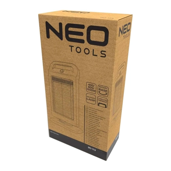 Современный галогенный инфракрасный обогреватель Neo Tools 90-113 мощностью 400/800/1200 Вт - это прибор для быстрого и эффективного обогрева помещений. Благодаря галогенному излучателю и трем нагревательным элементам инфракрасный обогреватель обеспечивает мгновенное тепло без необходимости длительного нагрева воздуха.