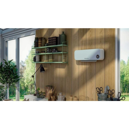 Современный дизайн Caldo Sky позволяет установить его на стене, экономя пространство и улучшая распределение тепла. Высокая установка обеспечивает максимальную эффективность обогрева, а несколько вариантов цвета позволят обогревателю гармонично вписаться в любой интерьер. Обогреватель не только функционален, но и эстетичен.