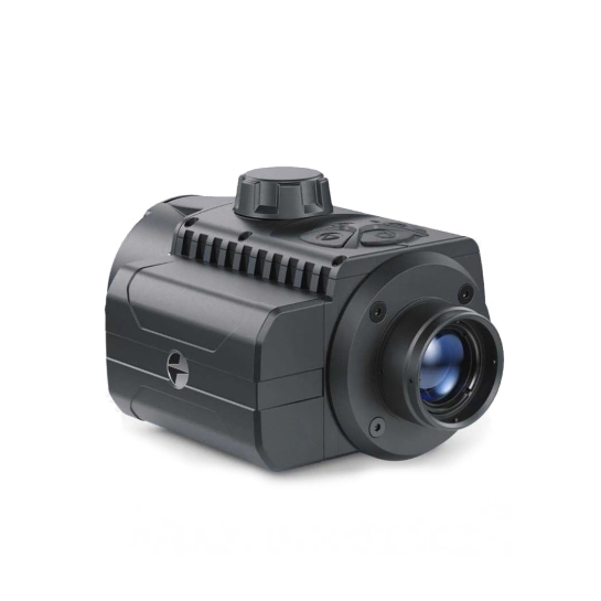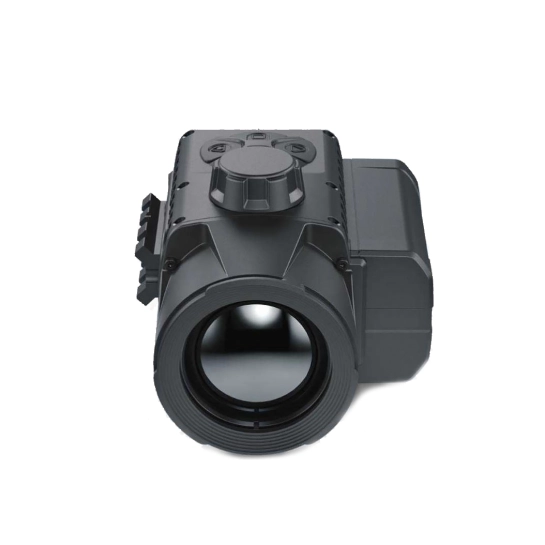 Тепловизионная насадка Пульсар Криптон FXG50 оснащена длиннофокусным объективом F50/1.2 с ручной фокусировкой от 5 м до бесконечности. Передняя линза выполнена из металла Германия (32Ge), который полностью прозрачен в требуемом диапазоне инфракрасного излучения. Угол поля зрения 8.7° x 6.5° позволяет стрелкам наблюдать область пространства 15.4м x 11.6м на удалении 100 метров. Этого вполне достаточно для быстрого поиска цели и точного прицеливания даже по движущемуся с небольшой скоростью объекту. Фокусировочный барабан расположен на верхней части корпуса. Внушительный размер и рифленая поверхность позволяю манипулировать настройками в перчатках, не отрываясь от наблюдений. Собственного оптического увеличения насадка не имеет, а передает увеличенное изображение при помощи смены кратности дневного прицела.