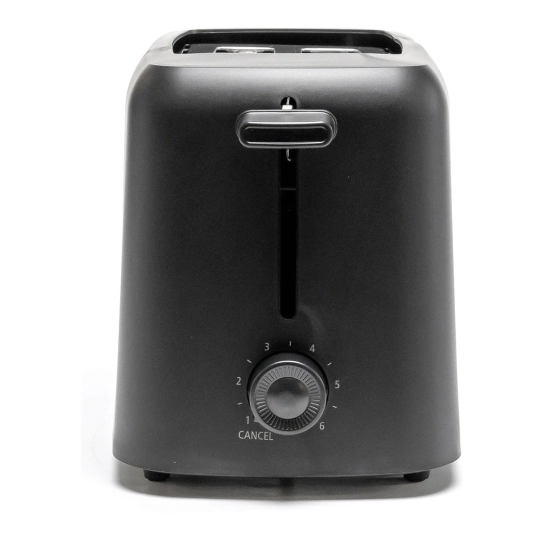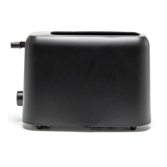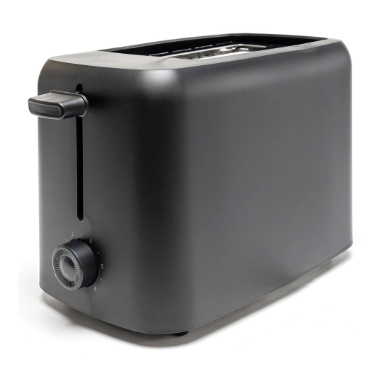 Корпус изготовлен из пластика чёрного цвета, что делает прибор лёгким и визуально аккуратным. Два слота позволяют поджаривать два ломтика хлеба одновременно. Прибор оснащён автоматическим центрированием ломтиков, что обеспечивает равномерное поджаривание независимо от толщины хлеба.