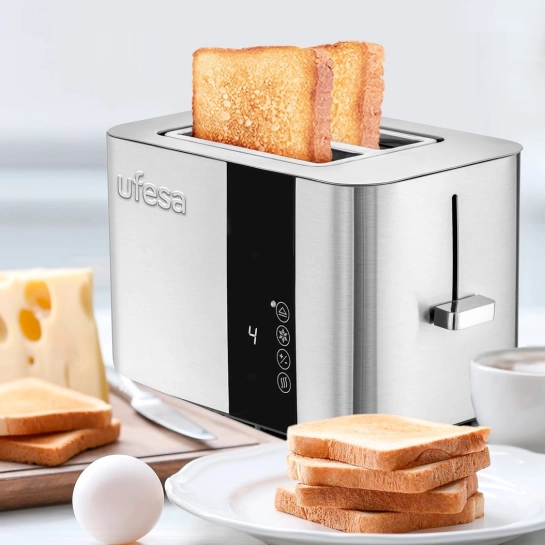 Тостер Ufesa Duo Delux обладает функцией автоцентрирования, которая позволяет равномерно поджаривать тосты независимо от их толщины. Регулировка степени поджаривания и наличие дисплея делают использование тостера максимально удобным и интуитивно понятным. Функции стоп/выброс позволяют в любой момент остановить процесс поджаривания и извлечь тосты.